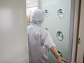 スタッフの衛生管理には最も注意しております。入場口に設置してあるエアーシャワーを通ることで、白衣等の表面に付着した埃などを取り除きます。 | ![]() |